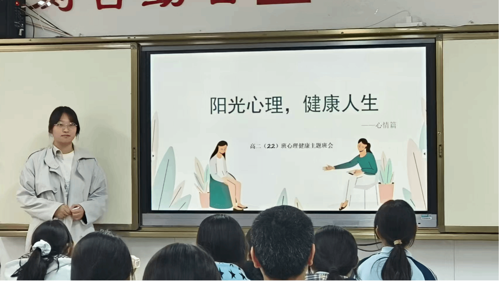 实习期间,实习组重点开展两类主题班会。一是独立主持“雅言润心田,礼行暖同窗”主题班会,二是周一开展“中学生心理健康”主题班会。为保障班会质量,实习生提前收集素材、设计互动环节,精准把控节奏。其中“心理健康”班会通过PPT展示与案例分析,向学生讲解心理健康认知与维护方法,现场反响热烈,课后多名学生主动向实习生请教相关问题。班会结束后,实习生及时反思总结,积累班级管理经验。