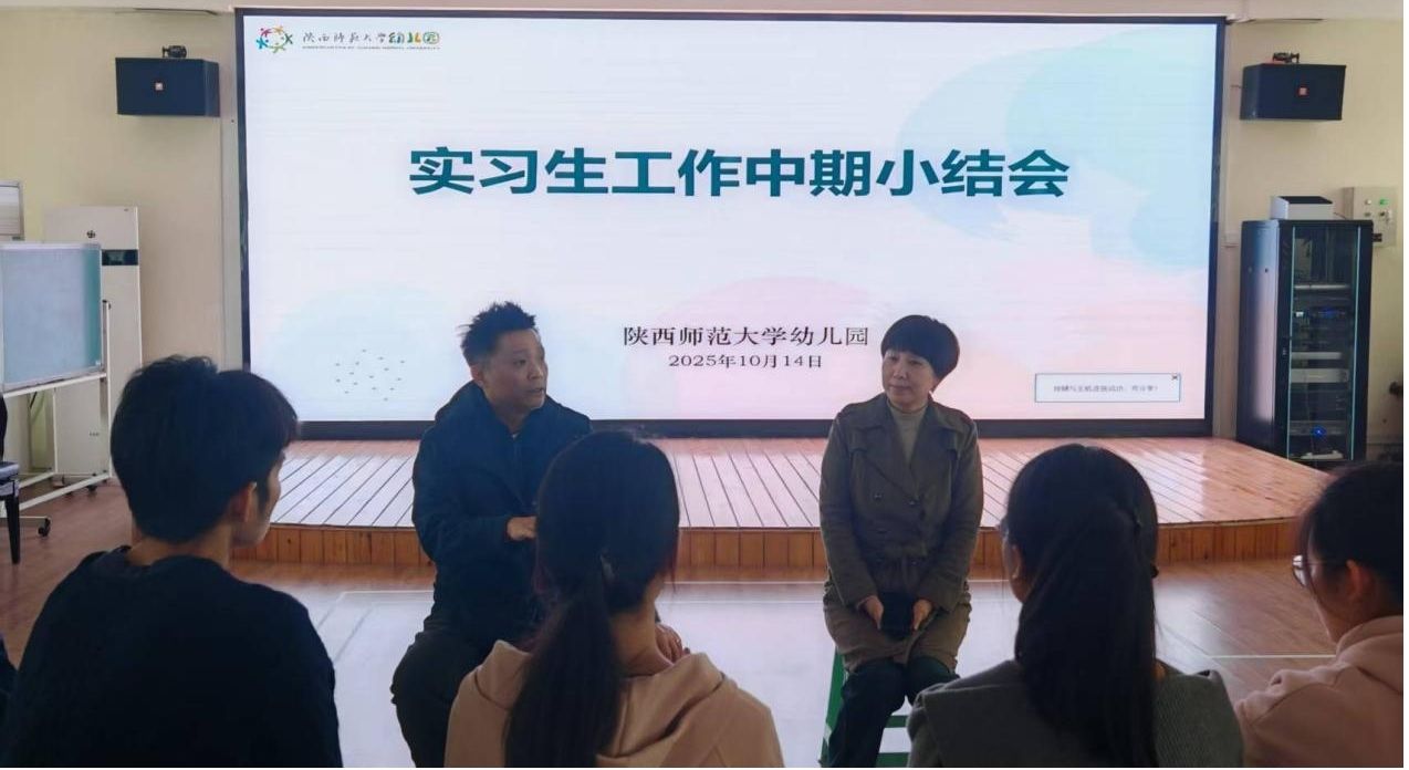 实习带队老师余宁莅临幼儿园开展中期检查工作,一场干货满满的中期小结会在音体会议室如期举行。会议现场,余宁老师、全体实习生与幼儿园保教办主任齐聚一堂,实习生们逐一汇报了实习以来的工作收获、遇到的困惑,从 “如何平衡保育与教育工作” 到 “怎样有效管理幼儿常规”,坦诚分享实践中的难点;保教办主任对实习生们的进步给予充分肯定,称赞大家已从初期的 “辅助者”逐渐成长为能主动参与工作的“协作伙伴”,并针对活动设计、家园沟通等方面提出具体改进建议;余宁老师结合专业理论,对实习生的困惑逐一解答,强调“反思性实践”的重要性,鼓励大家在后续实习中多观察、多总结,将实践经验转化为专业能力。这场小结会既是对前段实习的系统梳理,更是对后续工作的精准指引,让实习生们明晰了努力方向,增强了专业自信。