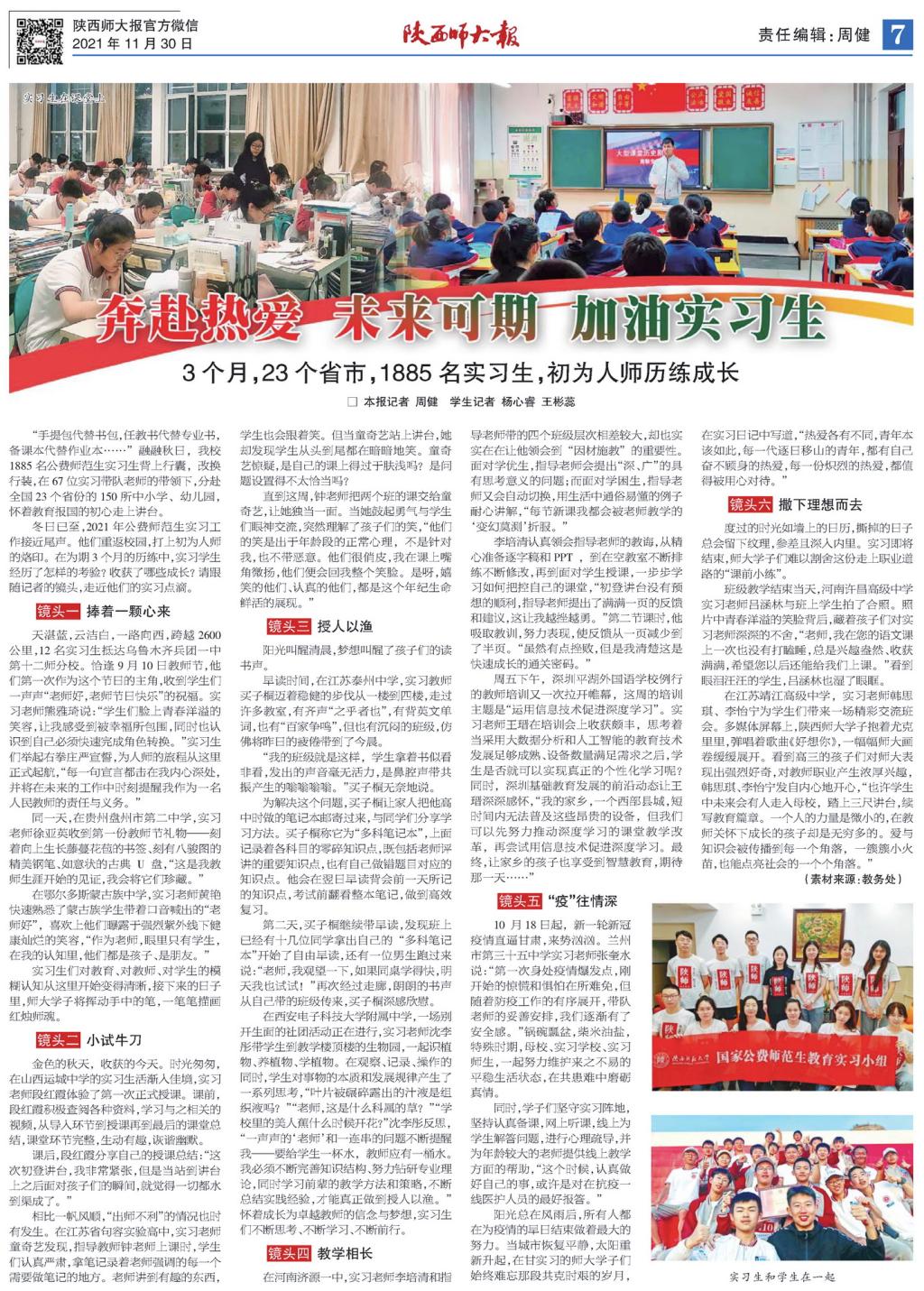 冬日已至,2021年公费师范生实习工作接近尾声。他们重返校园,打上初为人师的烙印。在为期3个月的历练中,实习学生经历了怎样的考验?收获了哪些成长?请跟随记者的镜头,走近他们的实习点滴。
