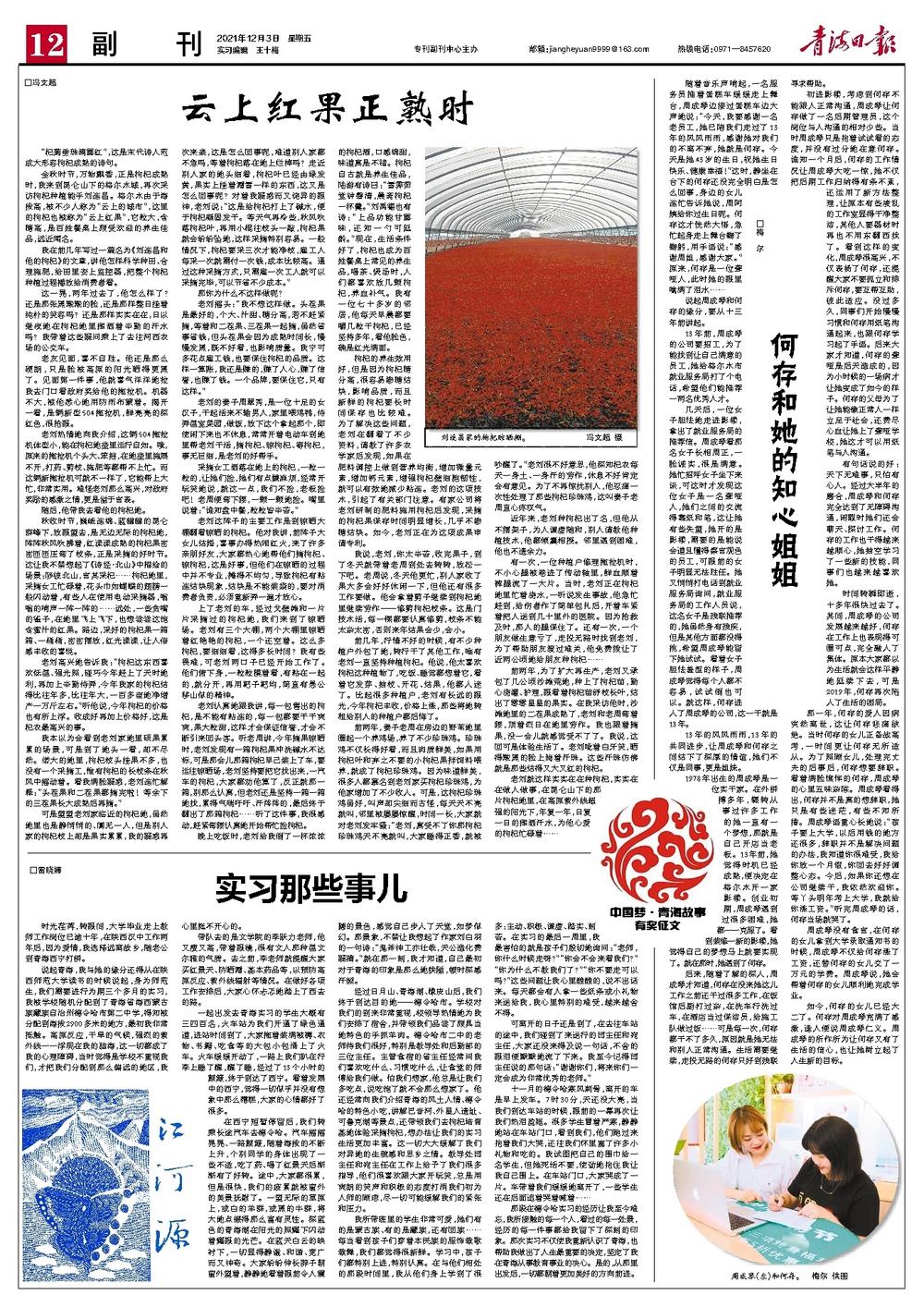 2021年12月3日,《青海日报》第12版刊登了我校首届公费师范生雷晓娜校友撰写的“实习那些事儿”的文章,介绍了其个人在教育实习中的所思、所感和所想。