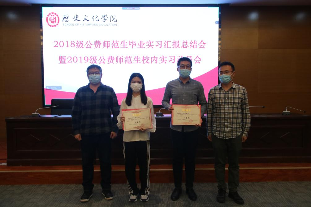 交流环节结束后,举行了为在第二届精彩一课全国历史教学本科生教学大赛中获得一等奖和二等奖的周云泽、曹丽洁两位同学的颁奖仪式,学院教师陈玮副教授、赵潮博士为两位获奖同学颁奖。