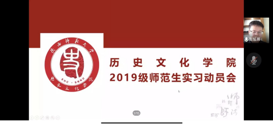 7月11日下午,历史文化学院召开2019级公费师范生教育实习动员大会,会议通过线上举行。学院党委书记孙伟,院长李秉忠,副书记衡旭辉、副院长李晨子、全体实习带队教师以及云端指导教师、教学秘书李炖、兼职辅导员刘中央以及2019级全体公费师范生参会,会议由副院长郭响宏主持。