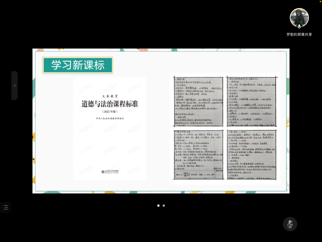 为检验学习成果,2022年8月5日下午3点,成都实习组政治学科组的组员学生就义务教育阶段《道德与法治课程标准》展开线上学习交流会。会议由政治小组成员廖雯组织开展。