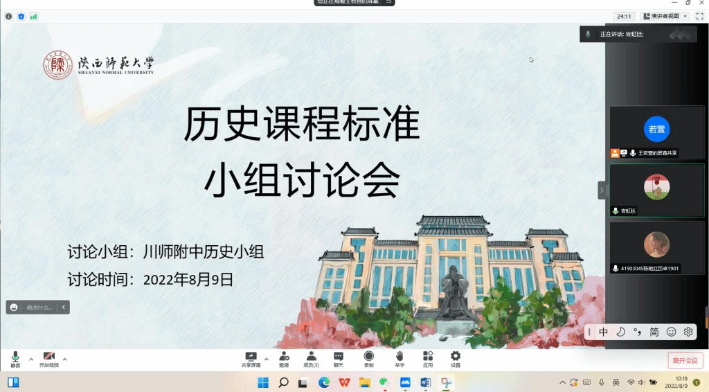 8月9日上午9点,组长组织历史组全体成员召开新课标学习总结分享会。