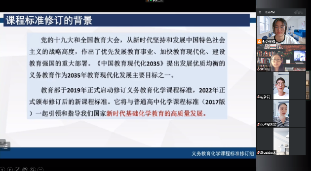 为检验各科的学习成果,2022年8月6日上午10点,化学组和物理、数学组一起参加了课标解读学习分享会,会议由物理学院刘莹组织展开。本次会议目的是促进化学组成员之间的交流,以及学习借鉴其他学科组的学习方法和学习感想。
