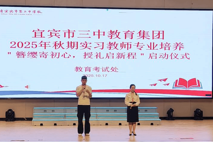 金秋十月,杏坛迎新。10月17日,宜宾市三中三江校区举行“簪缨寄初心,授礼启新程”——2025年秋期实习工作启动仪式。来自陕西师范大学、宜宾学院、乐山师范学院、四川轻化工大学等多所高校的领导、教师代表齐聚宜宾市三中,与全体实习生共同见证这场融合传统与现代的教育启航仪式。